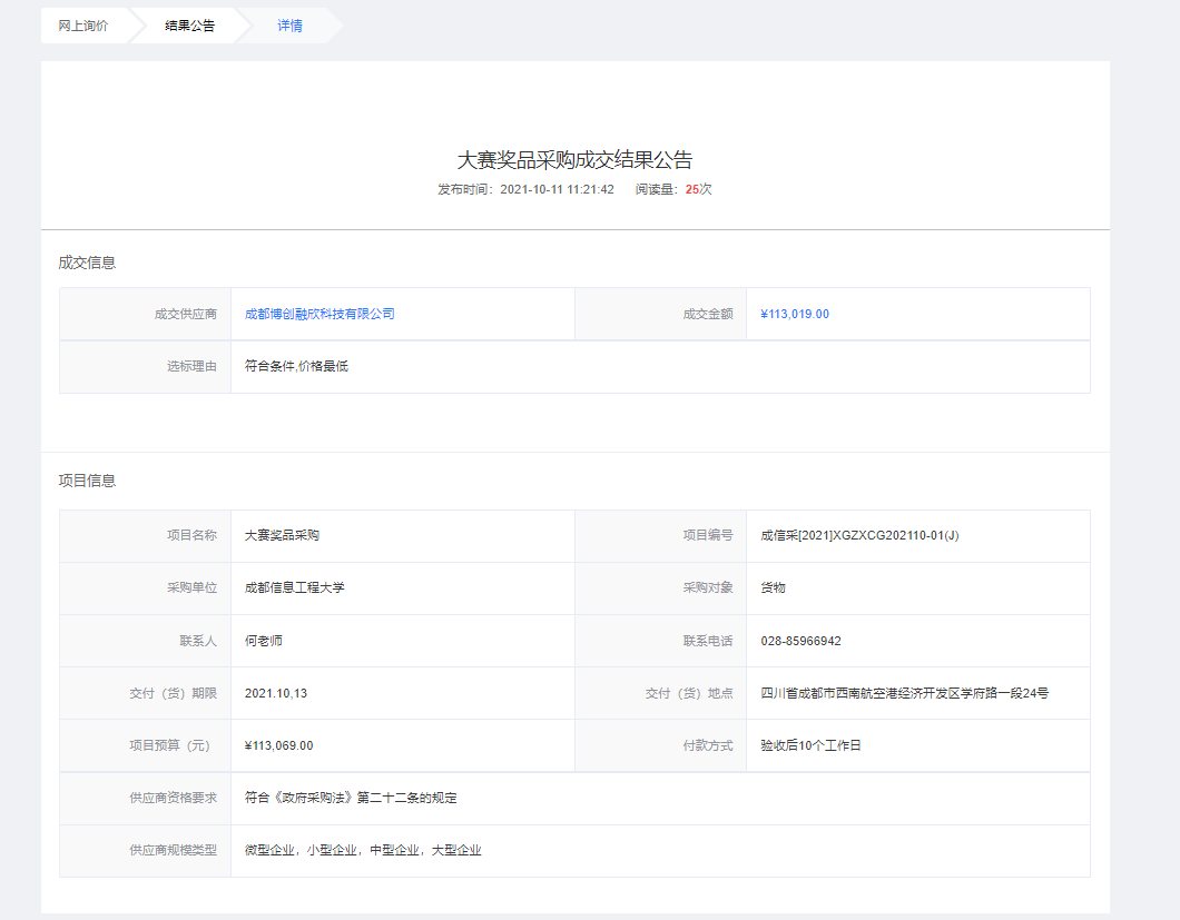 成都信息工程大学学位证、毕业证书内芯及封面采购项目结果公告